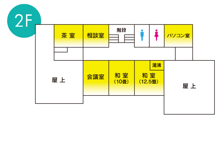 ◎ 軽運動室・講習室(調理実習室)・和室・会議室・相談室・音楽室・茶室の予約は、2カ月先まで受付をいたします。